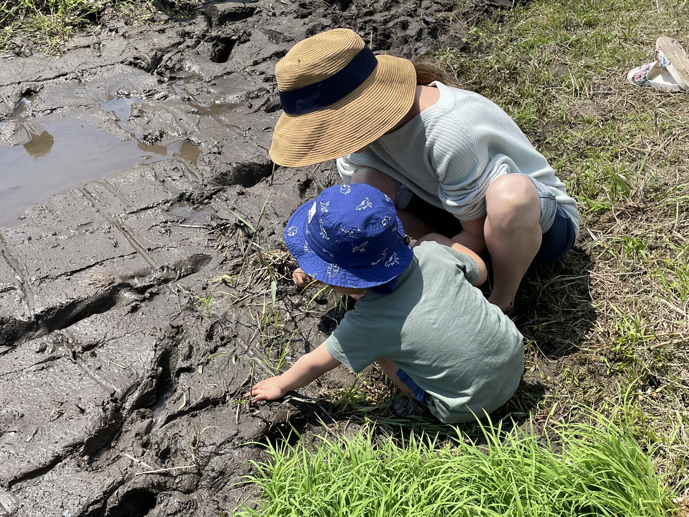 3日は友達親子と田植えにいき、久しぶりに泥の感触を味わい、