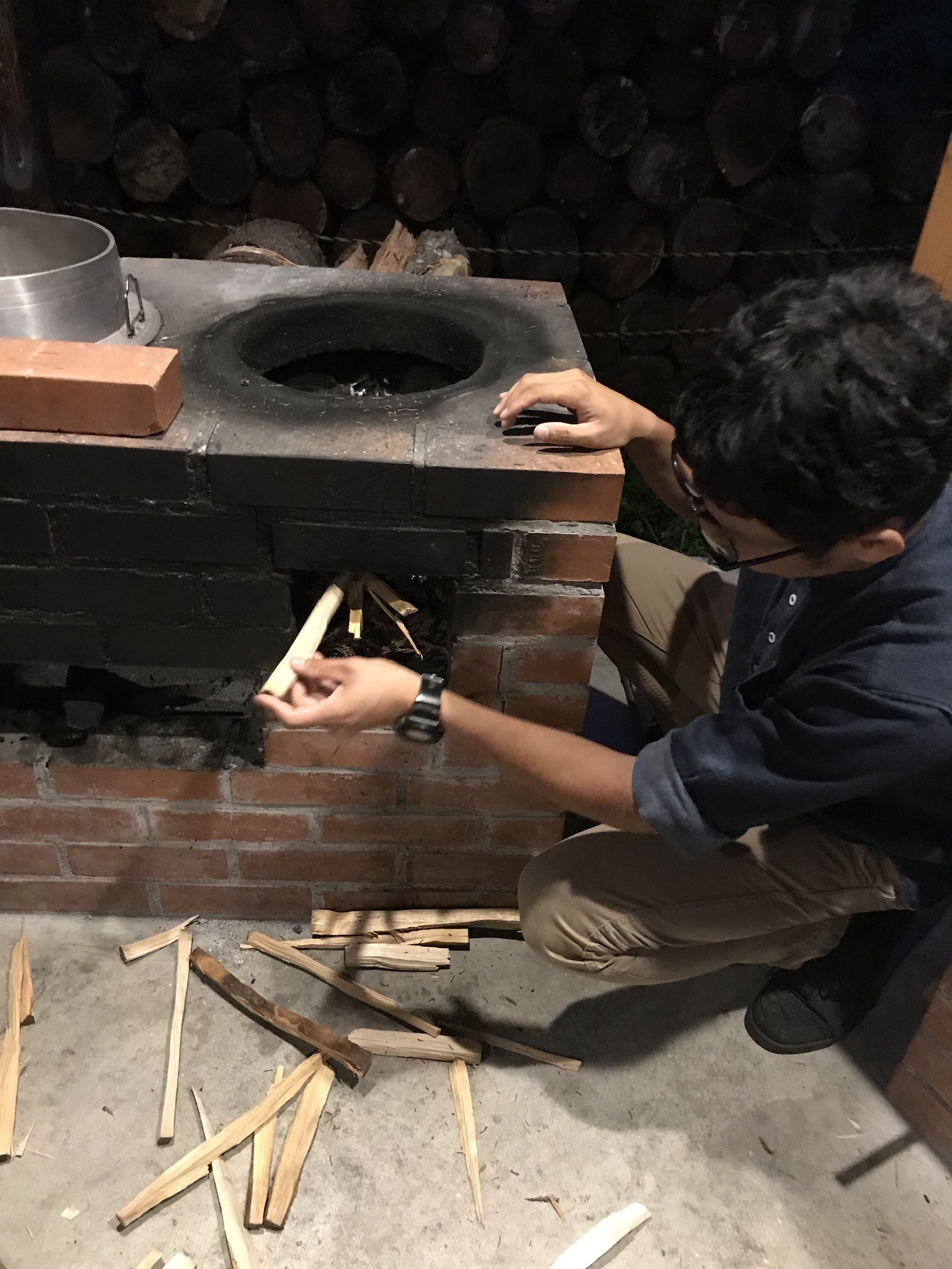 - 自分たちで割った薪で火をたく