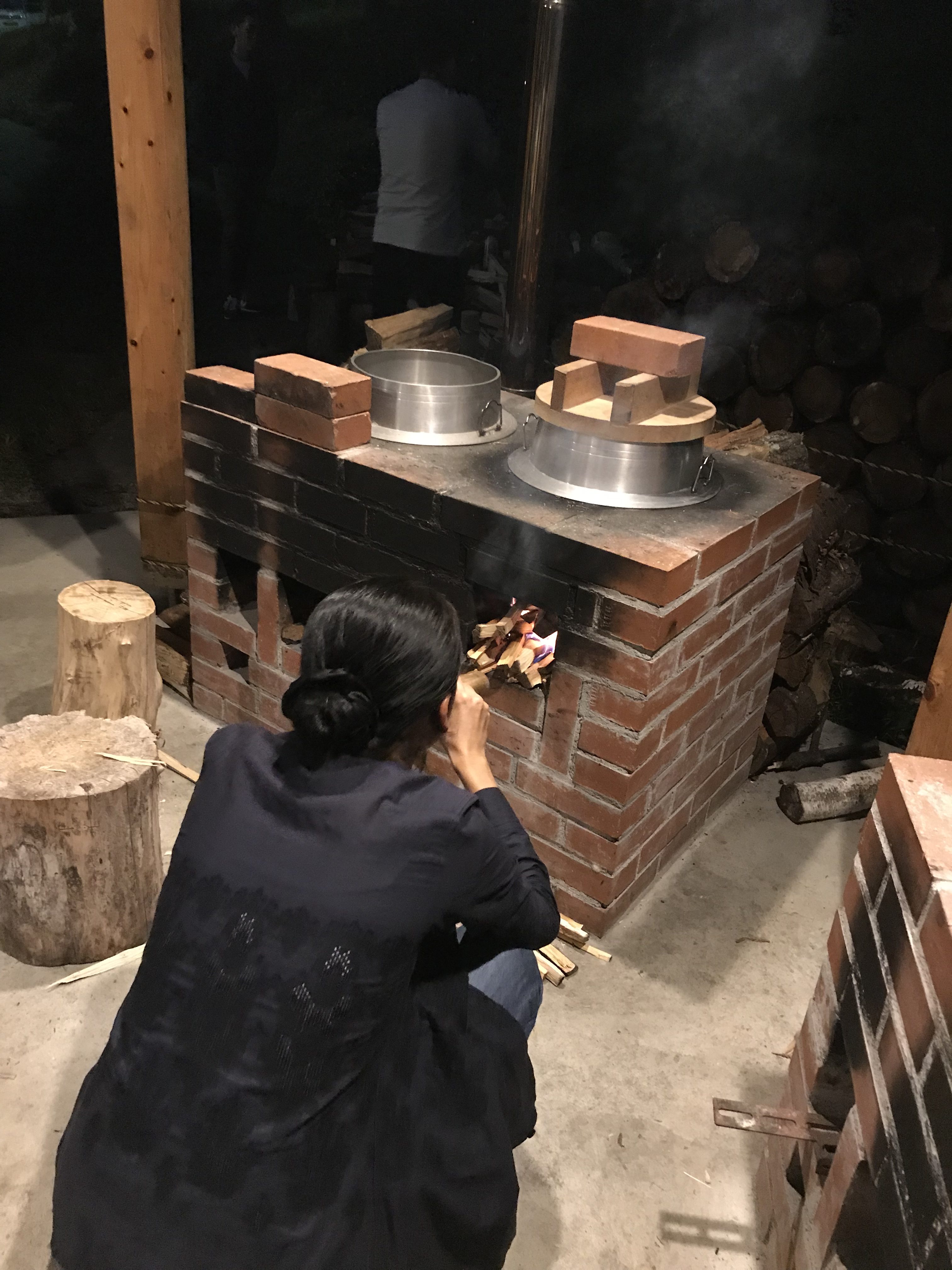 そしていよいよかまどに火をくべていきます。
