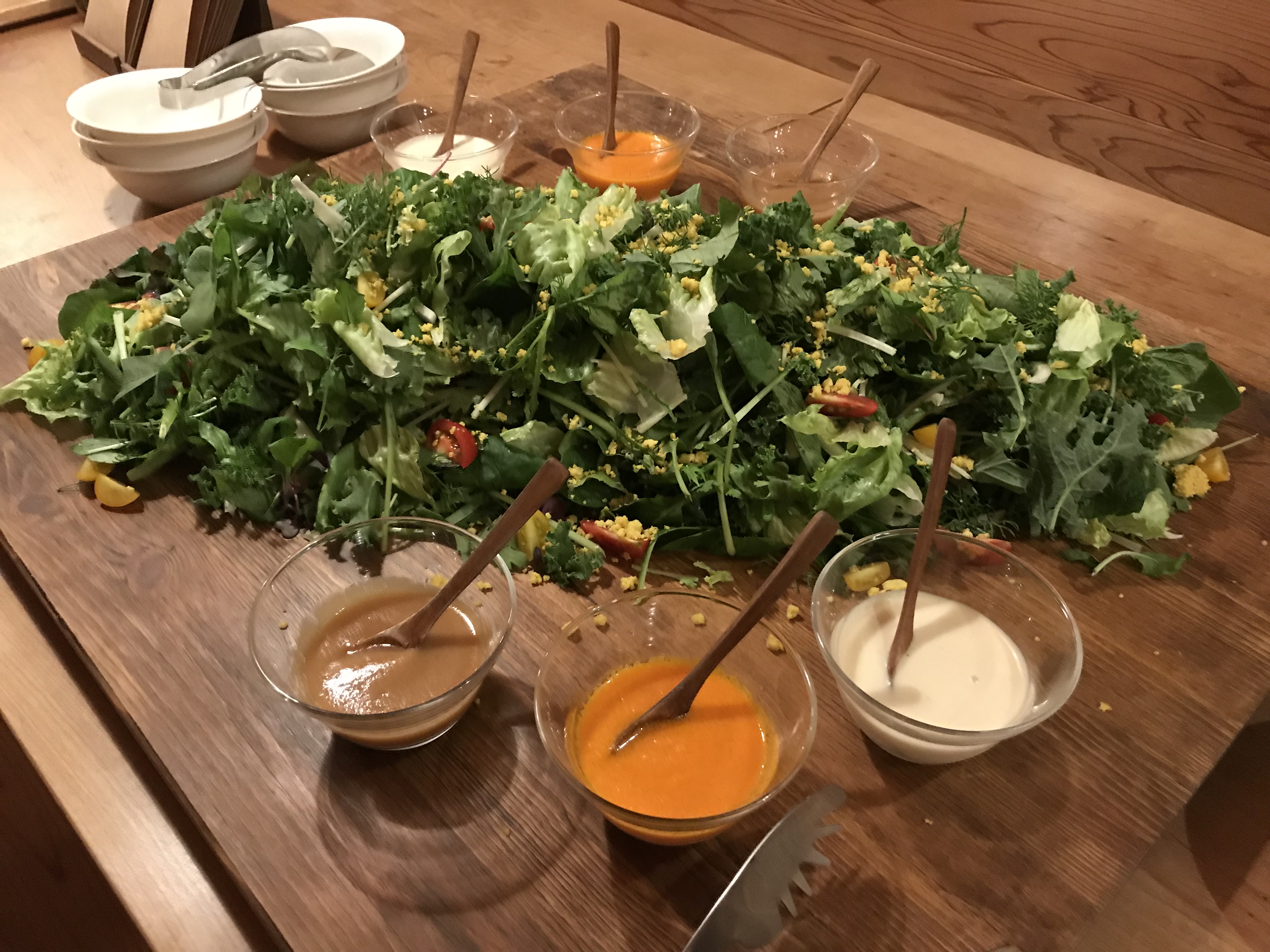 - 3種類のドレッシングと新鮮サラダ